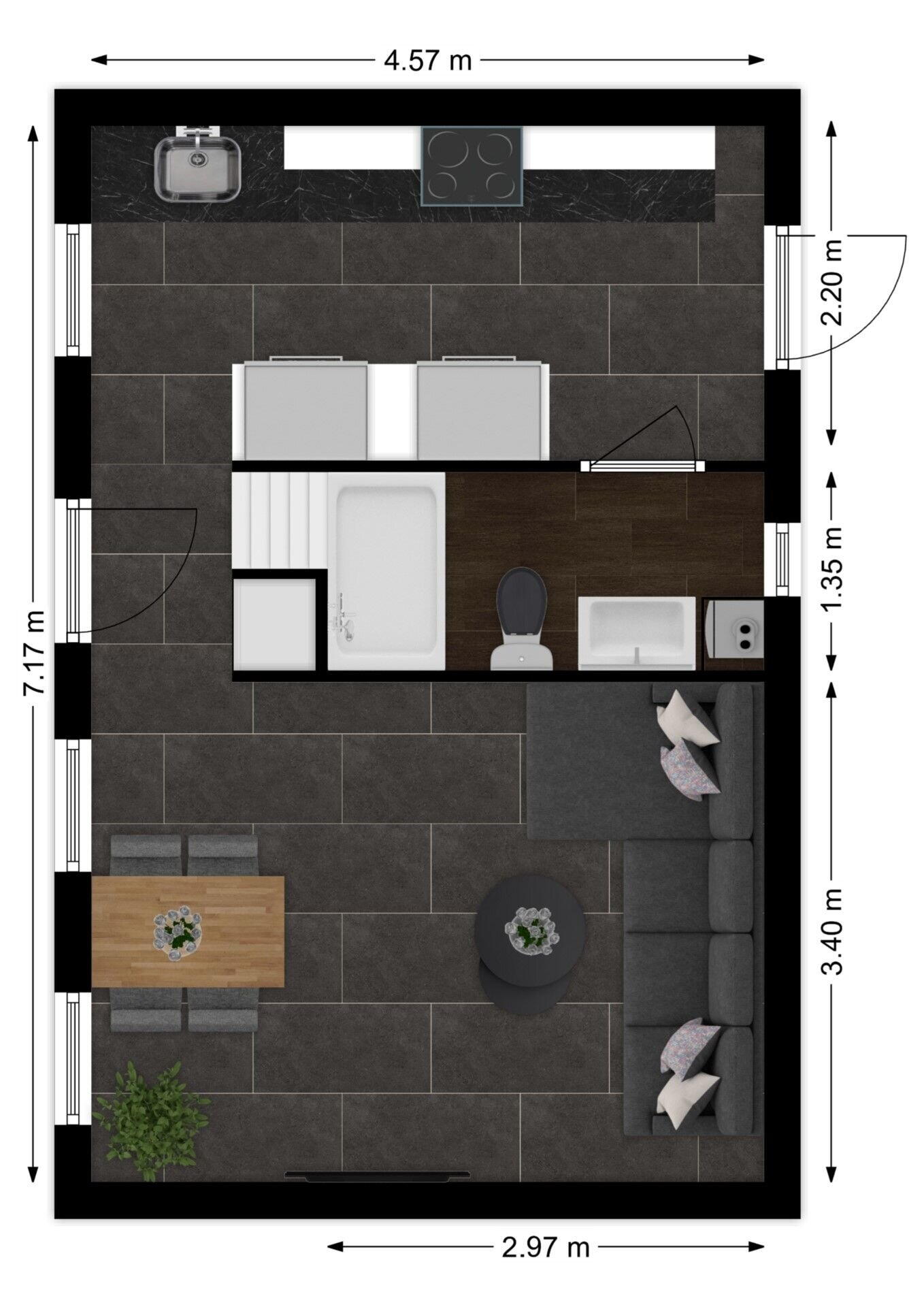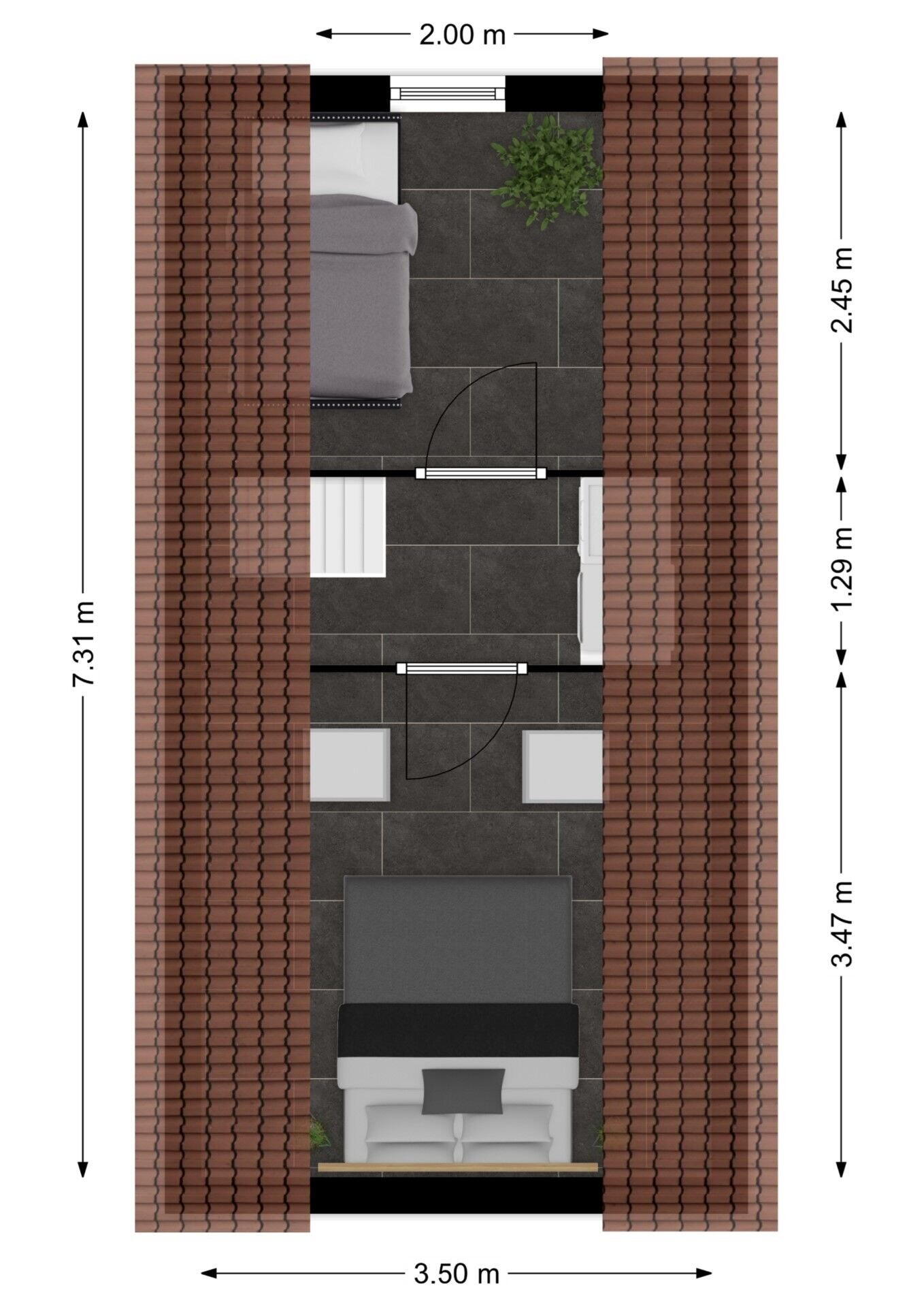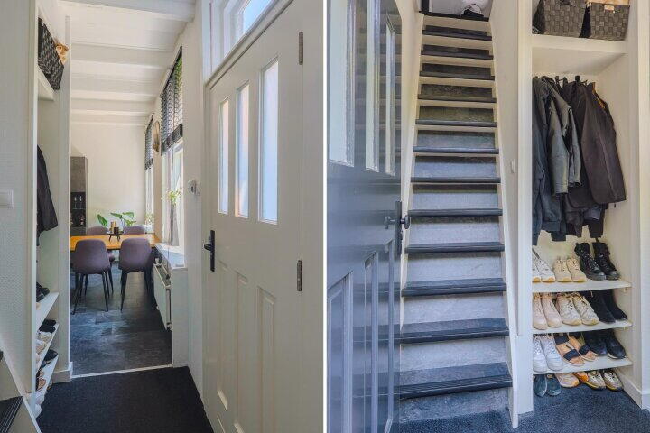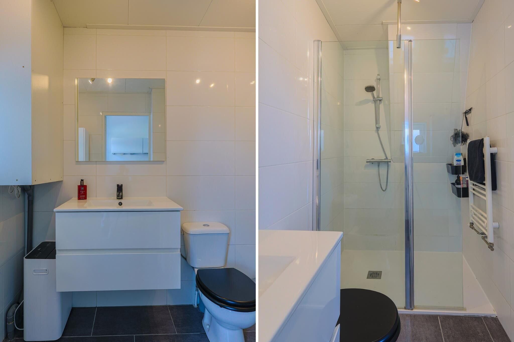 Dankzij de praktische indeling met de badkamer op de begane grond, beschik je boven over twee slaapkamers. Op de overloop is bovendien een handige plek voor wasmachine en droger gecreëerd, waardoor je optimaal profiteert van de beschikbare ruimte.